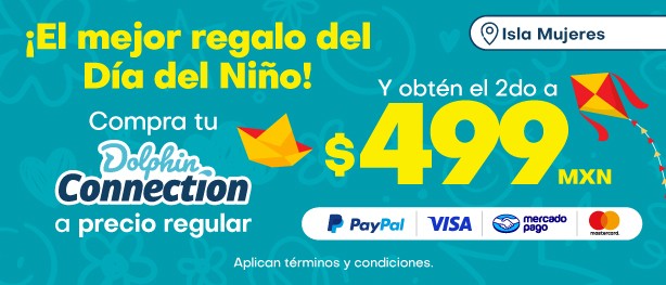 - Las actividades con Mamíferos Marinos (Delfines, Lobos Marinos y Manatíes) cuentan con una tarifa de Impuesto sobre Erogación por participar en Actividades con Animales Acuáticos (ISEPAAA), establecido por la autoridad Estatal de Quintana Roo. Este impuesto se solicitará directamente al momento de tu check-in, con costo de $50 mxn por persona a partir de los 6 años de edad.