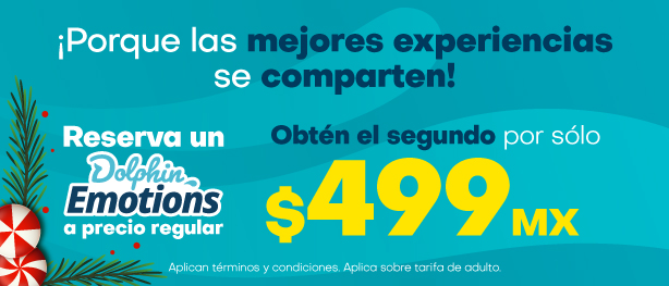 - Infantes de 1 a 5 años y Menores con estatura de hasta 1.20m / 47.24in / 3.93ft realizarán la experiencia de comportamientos Dolphin Encounter y deberán estar acompañados de 2 adultos pagados.